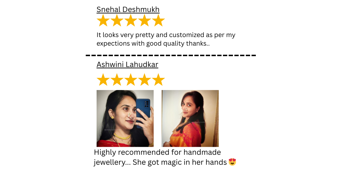 - Authentic Designs – Inspired by iconic pieces like Nath, Thushi, Kolhapuri Saaj, etc., handcrafted the traditional way.