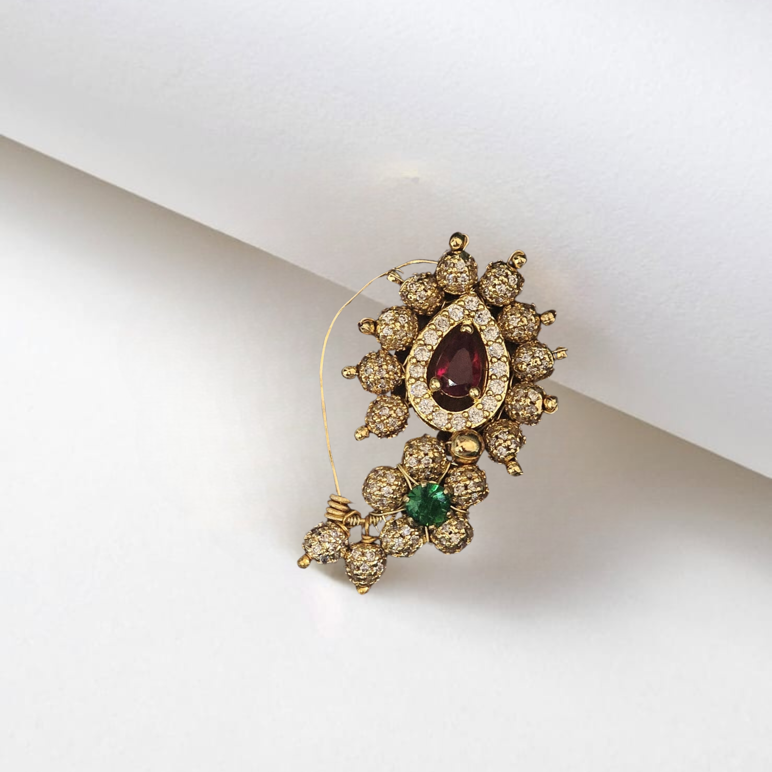 The Akshaya Nath exemplifies superior artisanal craftsmanship, where each piece is meticulously handcrafted to preserve traditional design integrity while incorporating subtle modern refinements. This ball nath features authentic detailing achieved through time-honored techniques, yet offers contemporary comfort and durability. The balanced composition honors cultural heritage while satisfying current aesthetic sensibilities—a testament to the enduring evolution of classical jewelry forms.