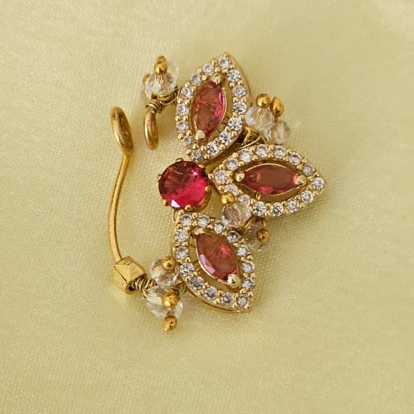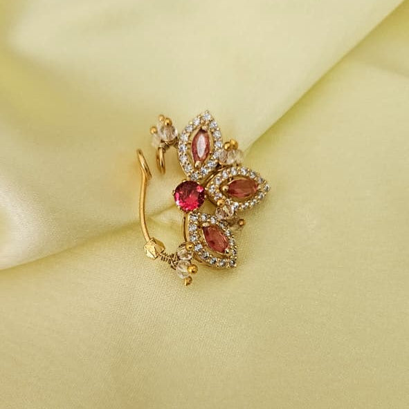 The Kumudini Nath is an exquisite nose ornament crafted with premium AD (American Diamond) elements that capture light with brilliant sparkle. This versatile piece is available in both press-on and piercing variants, allowing you to choose the application method that suits your preference. Each nath is meticulously designed to complement traditional and contemporary aesthetics alike. Customization options are available upon request, enabling you to personalize the design, size, or stone arrangement to match your unique style. Perfect for weddings, festivals, or everyday elegance, this nath combines timeless craftsmanship with modern versatility.