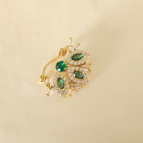 The Kumudini Nath is an exquisite nose ornament crafted with premium AD (American Diamond) elements that capture light with brilliant sparkle. This versatile piece is available in both press-on and piercing variants, allowing you to choose the application method that suits your preference. Each nath is meticulously designed to complement traditional and contemporary aesthetics alike. Customization options are available upon request, enabling you to personalize the design, size, or stone arrangement to match your unique style. Perfect for weddings, festivals, or everyday elegance, this nath combines timeless craftsmanship with modern versatility.
