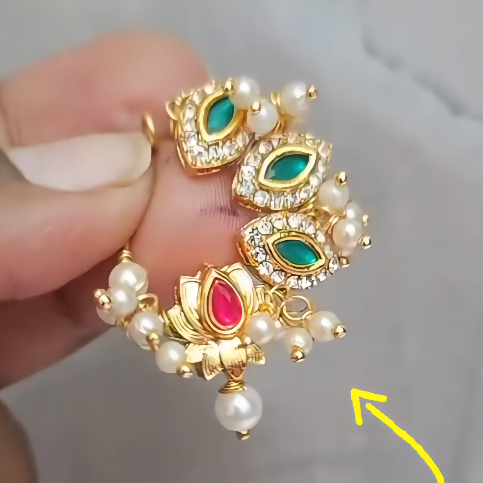 Enhance traditional elegance with the Pushpa Nath, featuring a delicate lotus flower motif. This exquisite nath combines artistry and cultural symbolism, making it a meaningful gift for special occasions. Its intricate design highlights the lotus, symbolizing purity and beauty, perfect for those who appreciate classic craftsmanship with a touch of nature-inspired grace.