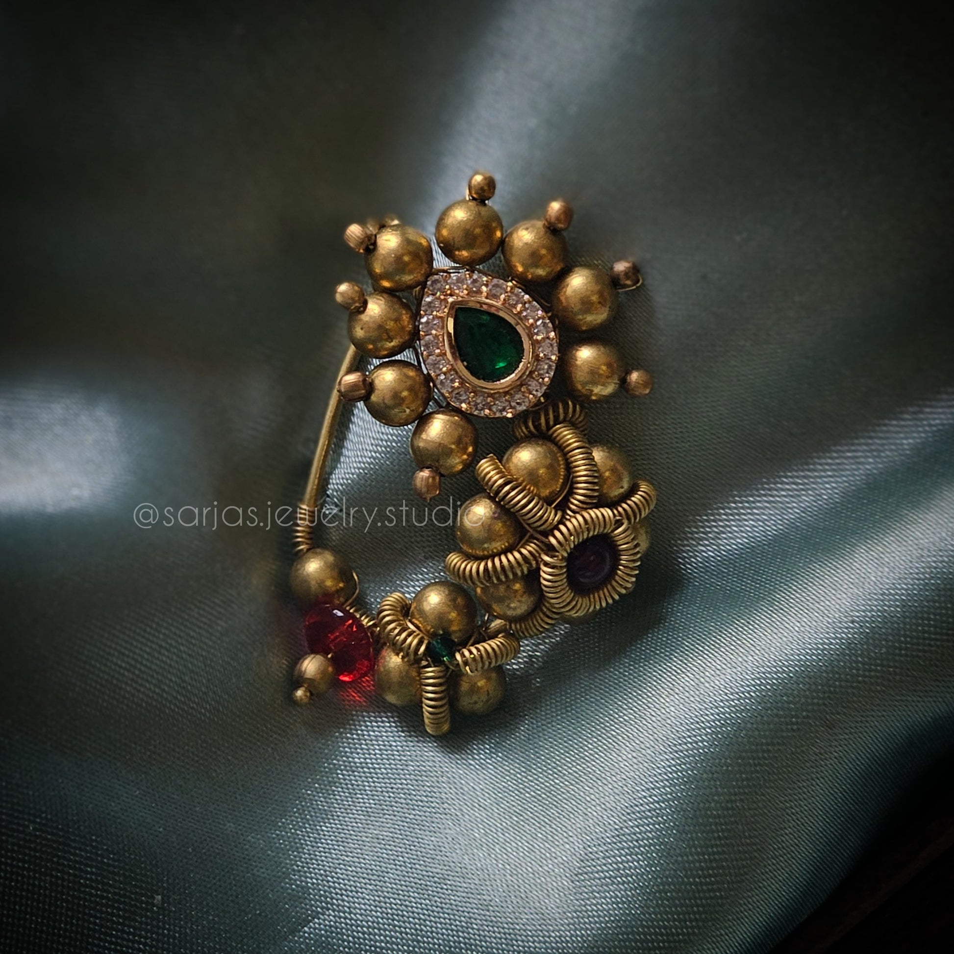 Meticulously handcrafted brass Shriharshini Nath featuring a distinguished matte finish that evokes the timeless allure of old gold. This traditional design embodies centuries of artistic heritage, with each piece individually crafted by skilled artisans. The sophisticated patina creates a rich, antique appearance while maintaining the structural integrity of fine brass. The subtle luster captures light with remarkable depth, offering an authentic alternative to conventional gold ornaments.