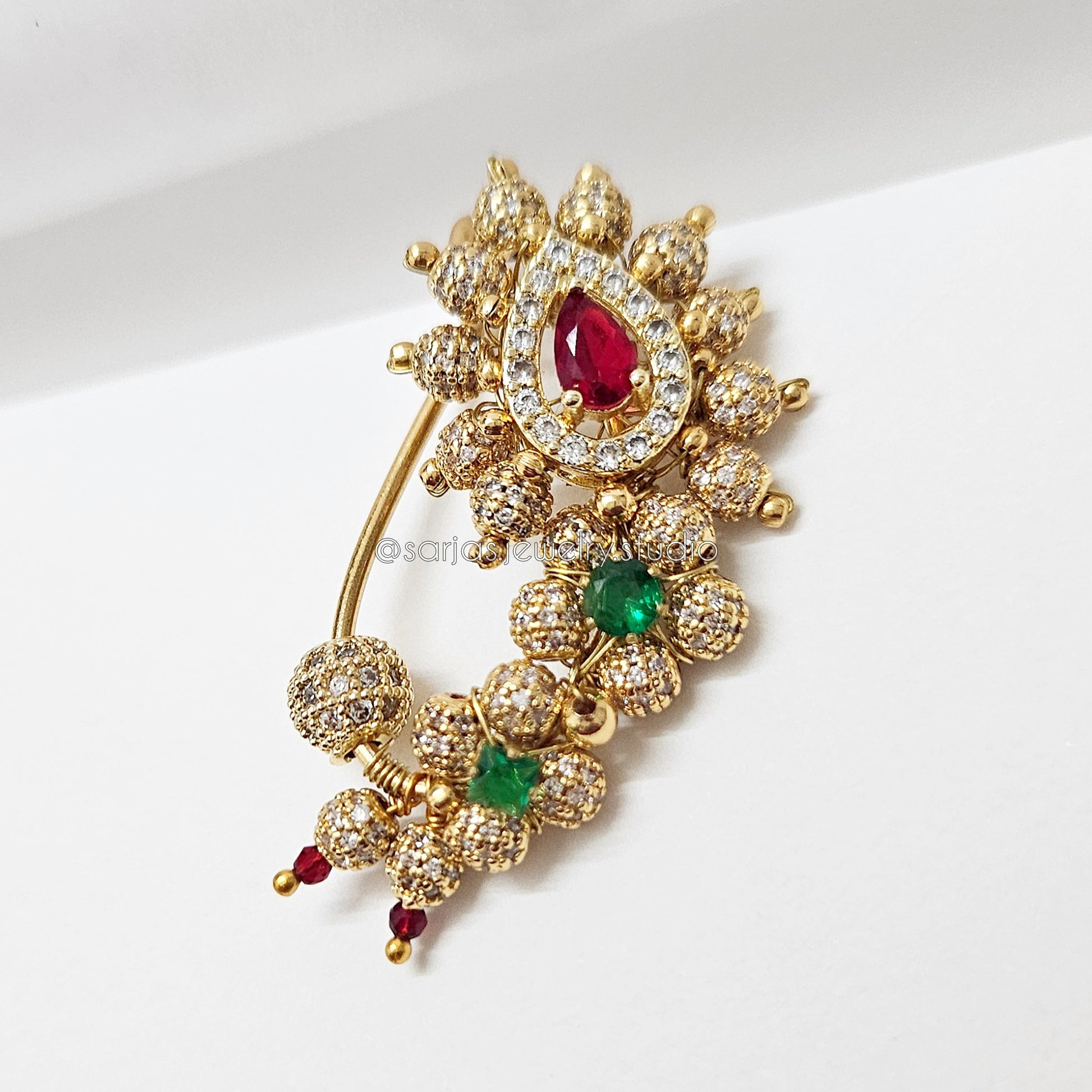 The Urmila Nath features a sparkling ad ball design that seamlessly combines traditional craftsmanship with contemporary style. Available in both press-on and piercing options, it offers versatile wearability to suit your preference. This piece enhances any look by adding a subtle yet striking traditional touch with modern appeal.