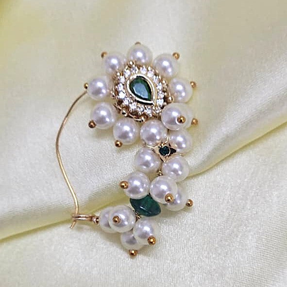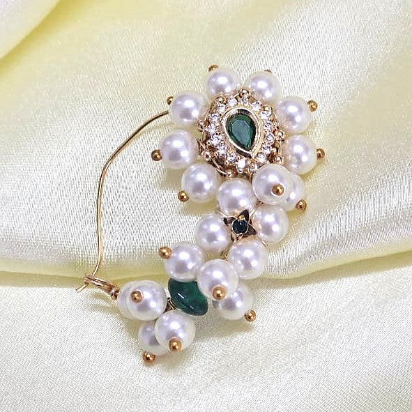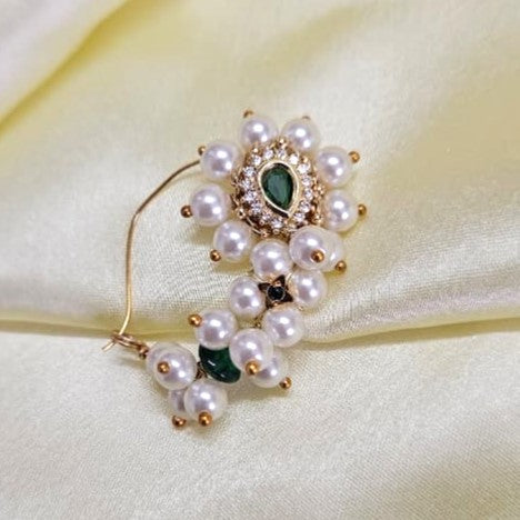 Vrushali Nath showcases exquisite handcrafted Japanese faux pearls adorned with an elegant green AD motif, merging traditional craftsmanship with contemporary design. Available in both press-on and piercing variants, this versatile piece transitions seamlessly from bridal occasions to everyday wear. The premium quality pearls deliver a lustrous finish that complements any complexion, while the intricate detailing adds sophistication to your jewelry collection. Whether you're seeking a statement piece for your wedding day or a refined accessory for regular styling, Vrushali Nath offers timeless elegance with the convenience of modern wearability.